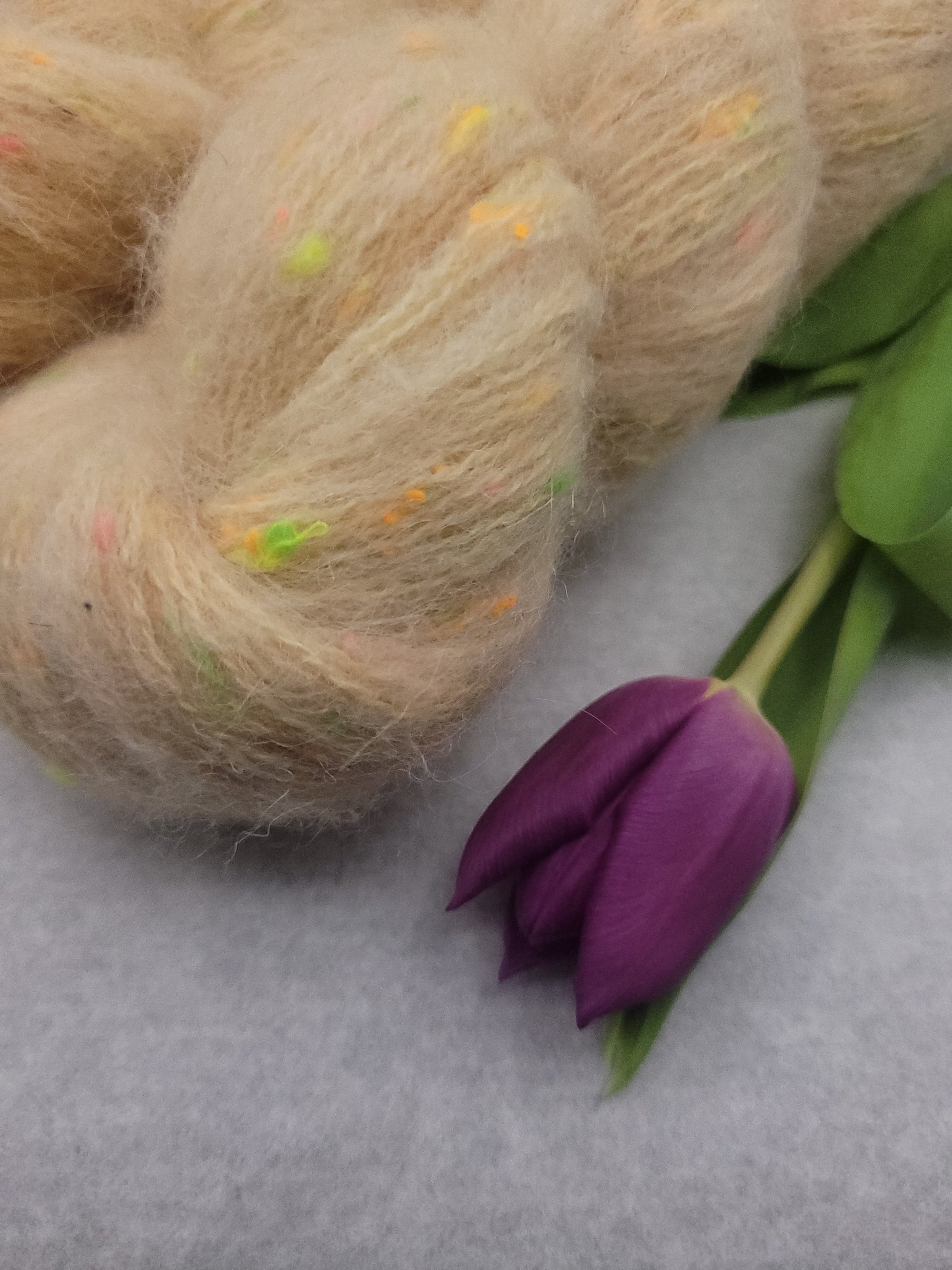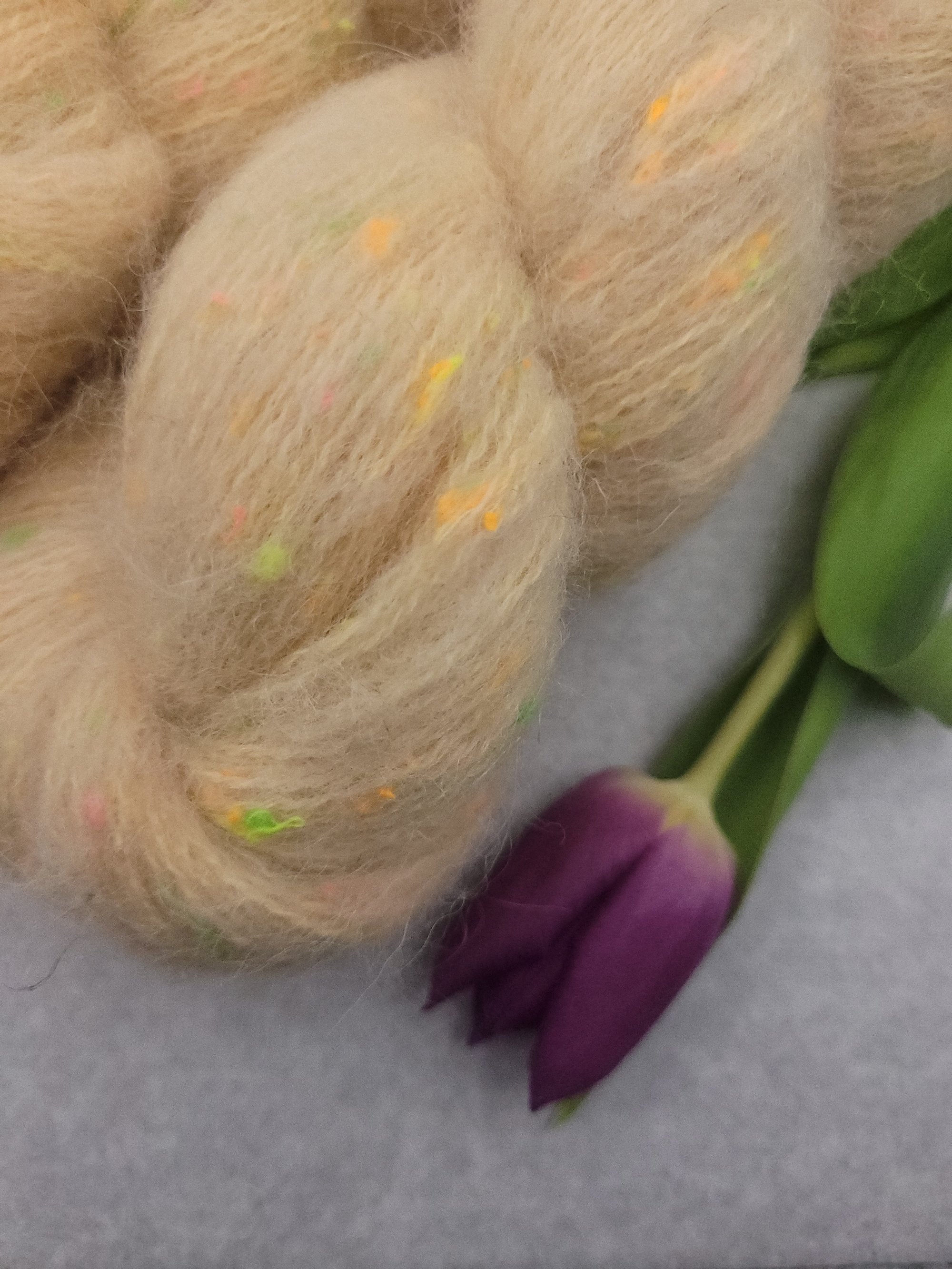 42% Merino SW, 32% Alpaga, 18%Neon Neps, 8% Lin 400m/100gr