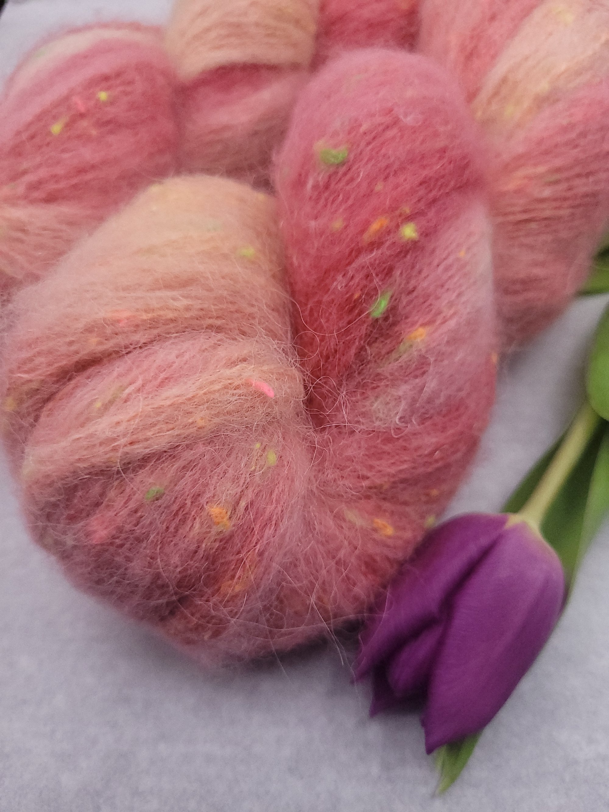 42% Merino SW, 32% Alpaga, 18%Neon Neps, 8% Lin 400m/100gr